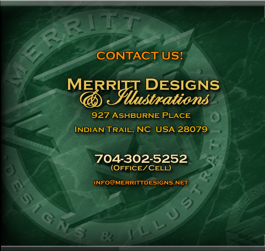 Spiritwear, PE Uniforms, mascots, logos, school spirit, art, design, airbrushed designs, tee shirts, shorts, sweatpants, wicking mesh, sports teams, team uniforms, football designs, basketball designs, lacrosse designs, clubs, events, marching bands, band competition designs... you get the picture! Also - Business Cards, Letterhead, Envelopes, Banners, Magnets, ASI Advertising, Ad Specialties, Postcards, Printing, Screenprinting, Great Prices! etc...Merritt Designs & Illustrations, 927 Ashburne Place, Indian Trail, NC 28079. 888-278-6580 info@merrittdesigns.net Our emphasis is on QUALITY!